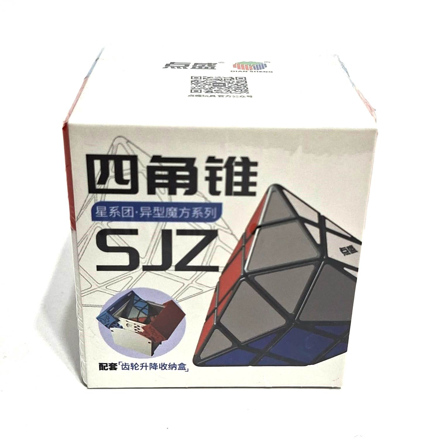 DianSheng 4-Corner Hexagonal Dipyramid V2 3×3 (Tiled) — новинка от популярной фирмы в спидкубинге. Головоломка имеет крайне не стандартную форму — это шестиугольная дипирамида, другими словами это две пирамидки с одним основанием. Смысл сборки похож на обычную сборку 3х3, нужно правильно определить центра, ребра, углы в ее соответствии. DianSheng 4-Corner Hexagonal Dipyramid V2 3×3 (Tiled) без наклеек, и находится в оригинальном боксе для хранения.