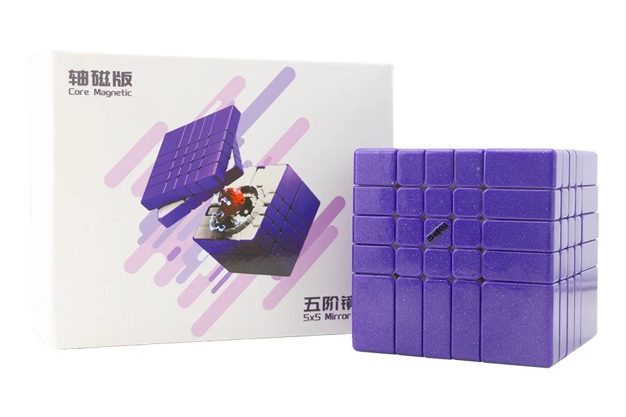 DianSheng Mirror Blocks M Ball Core 5×5 — классика кубика Рубика 5х5 и зеркального кубика. Цвет на всех гранях один, размеры элементов разные. Смысл сборки в выстраивании по форме элементов, без подсказки на цвет, что делает головоломку сложной. Это первая головоломка в мире спидкубинга с магнитами зеркалка 5х5, оснащена шарообразной магнитной крестовиной с ответными магнитами на ножках уголков, магнитами в уголках и ребрах.