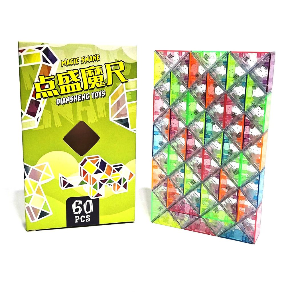DianSheng Snake 60 элементов – змейка Рубика в ярком дизайне! Классическая развивающая головоломка увлечет как детей, так и взрослых! Задача – собирать различные образы из соединенных между собой красочных элементов. Они вращаются вокруг своей оси, тем самым помогая создавать необычные фигуры. Можно собрать мяч, кобру, цветок, машинку и прочие другие идеи. Чем больше элементов, тем больше и разнообразнее фигур возможно собрать.