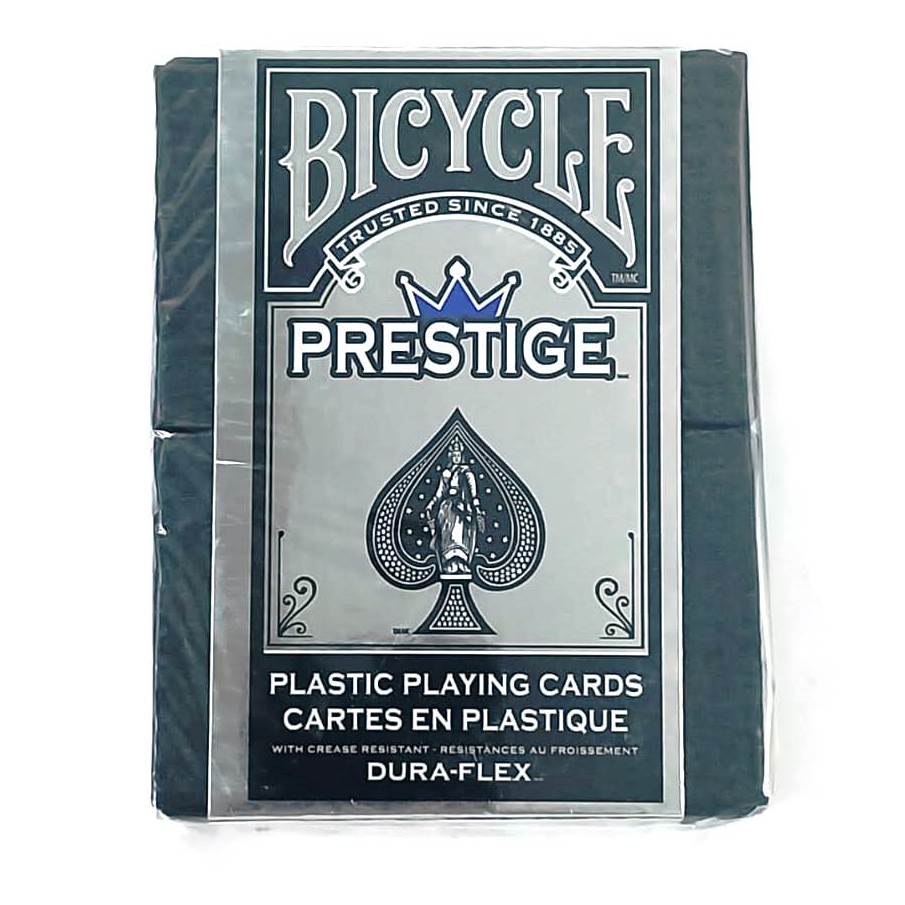 Компания Bicycle – выпустила колоду, изготовленную на 100% из пластика. Карты Bicycle Prestige — единственные пластиковые карты, которые дают тактильные ощущения, похожие на бумагу и при этом будут служить очень долго. Карты покерного размера, с крупным индексом, поставляются в специальном фирменном футляре.