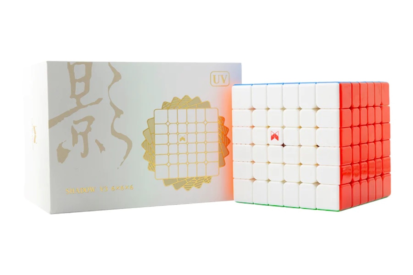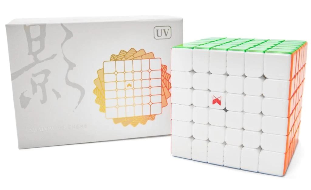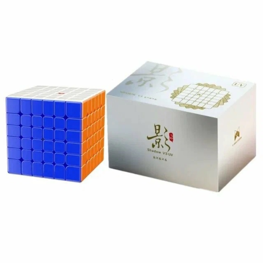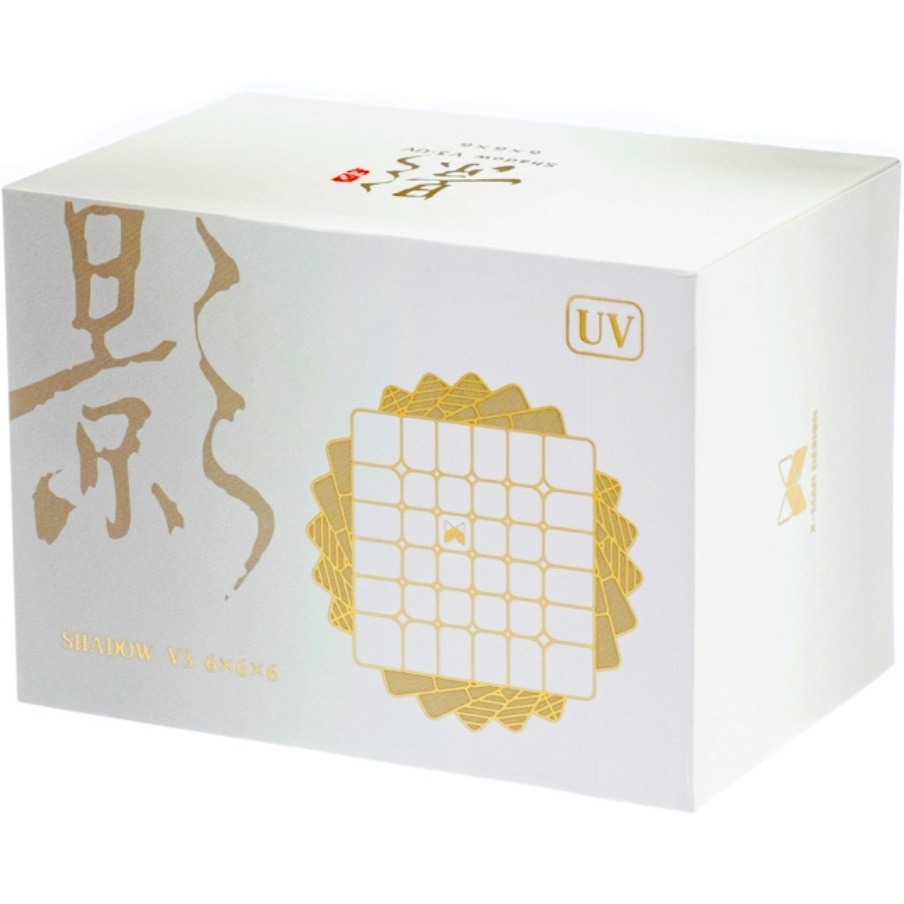 QiYi MoFangGe X-Man Shadow V3 (Magnetic + Ball Core) UV Coated 6×6 — самая навороченная версия кубика серии Shadow 6х6, с UV покрытием и магнитной крестовиной. С заводской настройки кубик имеет приятные настройки, контролируемая, быстрый, с хорошим углом резки. На внешних слоях магниты слабее, на внутренних — сильнее. При агрессивной сборке необходимо дополнительно настроить. UV антицарапное покрытие, глянцевый вид и хорошее сцепление с пальцами.