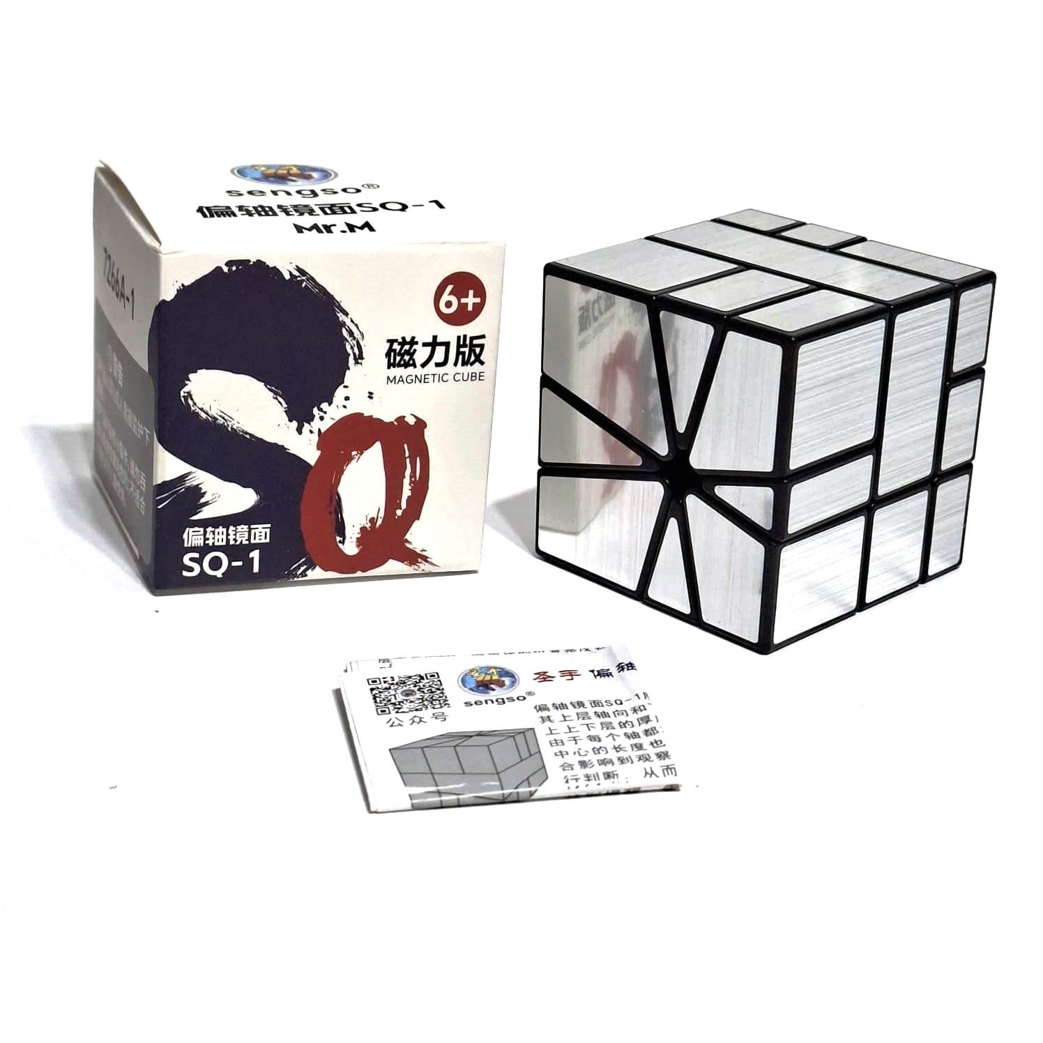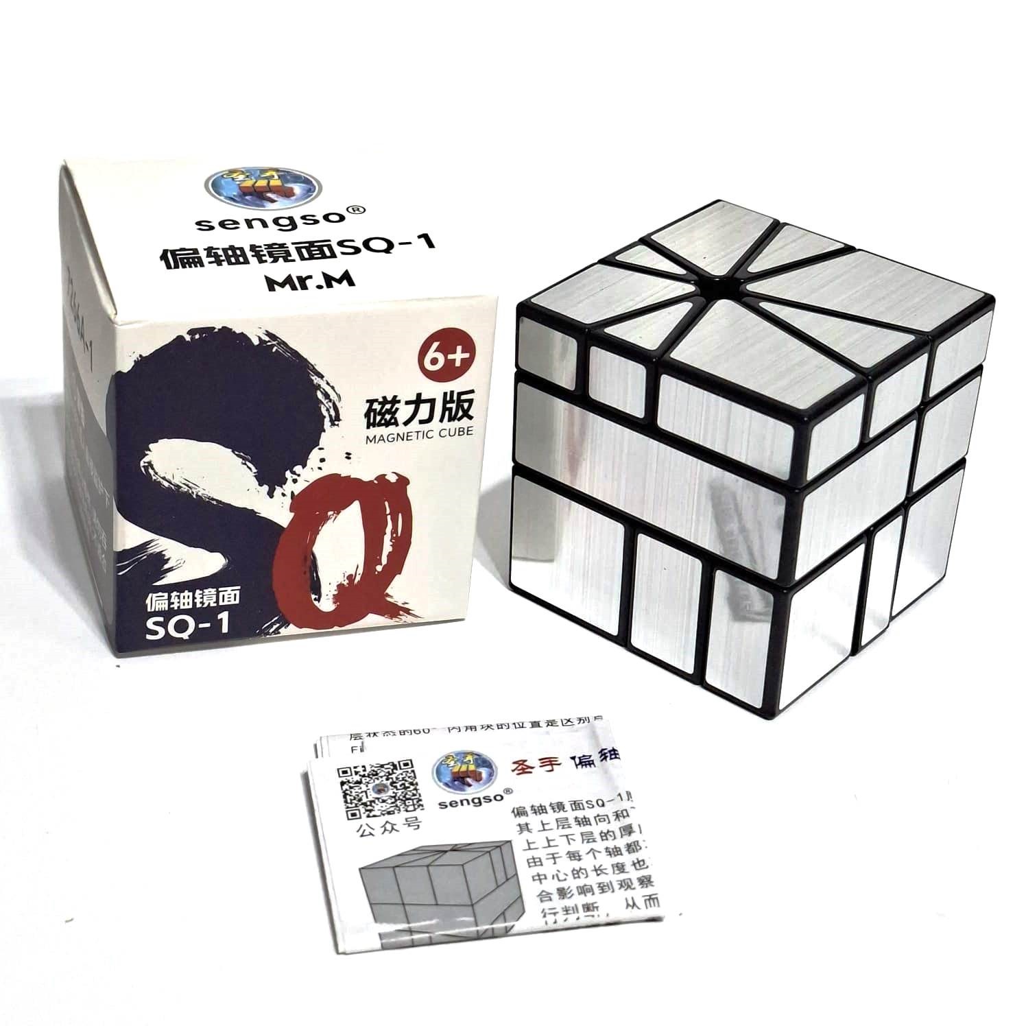 ShengShou Axis Mirror M Square-1 — необычный серебряный сквайер 1, с элементами зеркалки и Axis. Он меняет форму, грани поворачиваются как у Axis, имеет зеркальное отражение, оснащена магнитами, что придает стабильное кручение и точность при вращении. ShengShou Axis Mirror M Square-1 — идеальное решение для любителей собирать необычные головоломки и соединить при сборке умение и логику.