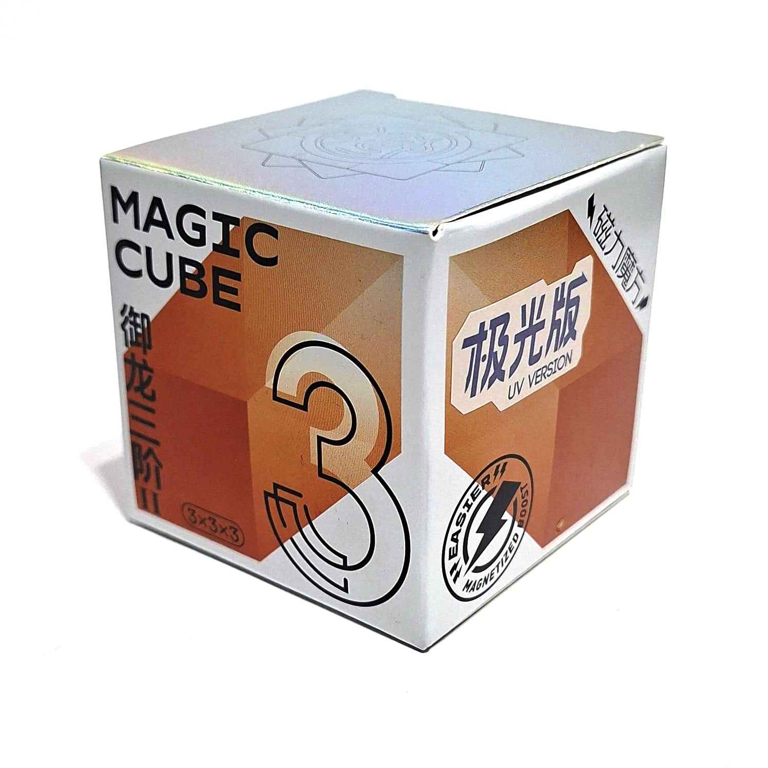 YJ выпустила обновленную версию магнитных кубов Yulong от 2х2 до 4х4. YJ YuLong V3 M UV Coated 3×3 оснащен магнитами в ребрах и углах, которые лучше фиксируют грани, кручение плавное и контролируемое. Из-за нового более сложного строение механизма у кубика стал больше уголрезки. UV покрытие (антицарапное) — защищает от царапин и легко цепляется пальцами за грани кубика.